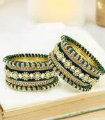 Gold toned green velvet silk thread chuda set studded with cubic zircon stones. Secured with slip on closure