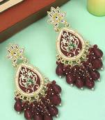 Gold Plated Kundan Maroon Meenakari Teardrop Earrings