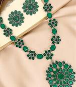 • Product Id : 4577390 • Package Details : 1 Necklace, 1 Pair Of Earring • Type : Necklace Sets • Look : Contemporary • Jewellery Work : Studded Jewellery • Color : Green • Plating : Silver • Base Material : Alloy • Piercing : Yes • Height : 23.0 • Width : 1.1 • Care : Store Jewellery In A Zip Lock Pouch (Air Tight Pouch), Keep Away From Water Perfume And Other Chemicals And Clean It With Dry And Soft Cloth, No Direct Perfume, Deo, Water, Spray On The Jewellery. • Setting : Bezel • Finish : Glossy Payments [+]