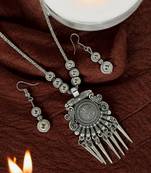 Silver Plated Oxidised Long Jewellery Setnecklace Set