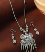 Silver Plated Peacock Desing Jewellery Setoxidised Necklace Set