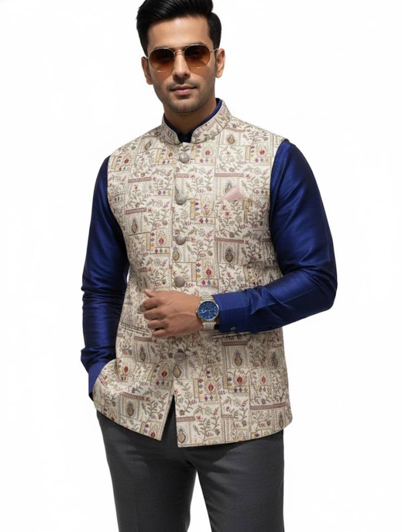 Beige Regal Heritage Art Silk Nehru Jaket
