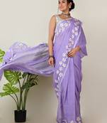 Aakar Lavender Handloom Cotton Saree With Delicate Handcrafted Floral Art