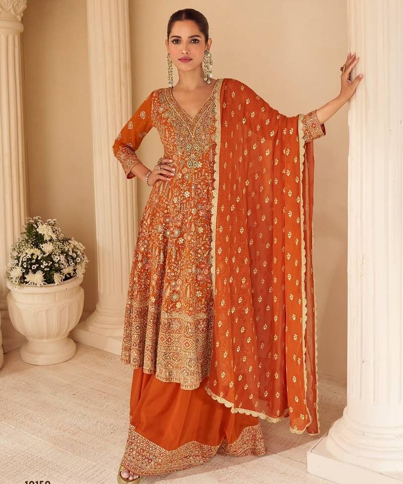 • Fabric : Georgette • Color : Orange • Style : Palazzo • Color : Orange Dupatta Details