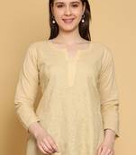 Hand Embroidered Fawn Cotton Lucknowi Chikankari Straight Kurti For Women
