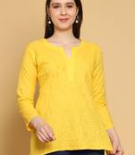 • Product Id : 4237214 • Package Details : 1 Kurti • Type : Cotton Kurtis • Region : Lucknow • Occasion : Casual • Fabric : Cotton • Work : Embroidered • Type : Chikankari • Look : Traditional • Sleeve : Quarter Sleeve • Neck Style : Round Neck • Color : Yellow • Stitching : Stitched • Length : 30 • Side Slit : Yes Payments [+]