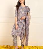Buy Exlusive From AHIKA blue color cotton fabric kurta pant set, paired with a dupatta. crafted with meticulous attention to detail, this ensemble exudes sophistication and grace. the kurta features intricate embroidered adorning the neckline, sleeves, and hemline, adding a touch of opulence to its classic silhouette, this set is perfect for all-day wear. The breathable nature of Pure Cotton ensures you stay cool and comfortable, even in warmer weather. It's ideal for both casual outings and festive occasions, This is a Beautiful Kurta For Women's And Girl. We have many varieties in Embroidered Kurta, Casual Daily Wear Kurta and Office Wear Kurta. This Product is designed with absolute perfection.