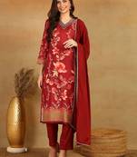 Women Maroon Rayon Blend Floral Printed Straight Kurta Trouser With Dupatta