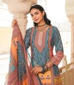 Women Blue Rayon Blend Ethnic Motifs Printed Straight Kurta Trouser With Dupatta