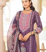 Women Purple Rayon Blend Ethnic Motifs Printed Straight Kurta Trouser With Dupatta