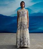• Color: Ivory_x000B_• Fabric: Chanderi_x000B_• Lining: cotton_x000B_• Screen printed by hand_x000B_• Gathered panels_x000B_• Tape detailing_x000B_• Organza back tie up_x000B_• Wash Care: Dry Clean Only