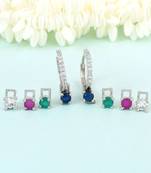 Versatile Changeable Studs Huggie Hoop Earrings. American Diamond jewelry, and other Jewelry accessories. Dazzle around in the party with these versatile gold-plated huggie hoop earrings that feature different color-changeable CZ studs to match your look. Wear them with or without the studs on any dress of your choice. Caring for your fashion jewelry, But do remember, fashion jewelry lasts longer when kept dry and free of chemicals. Follow this simple rule: Your jewelry should be the last thing you put on and the first thing you take off."