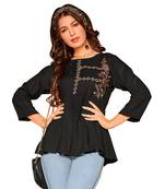 Black Embroidered Slub Party Tops