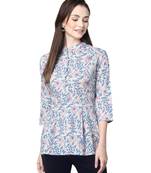 Anushil Cotton Cambric Printed Mandarian Collar 3/4th Sleeves Short Kurti Style Peplum Top