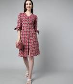 • Product Id : 4260300 • Package Details : 1 Dress • Type : Dresses • Occasion : Casual • Fabric : Cotton • Work : Woven • Sleeve : Quarter Sleeve • Neck Style : V Neck • Color : Red • Stitching : Stitched • Style : A Line • Length : Knee Length • Length : Knee Length Payments [+]