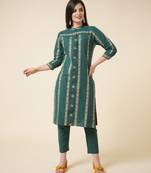 • Product Id : 4156034 • Package Details : 1 Kurti / 1 Pant • Type : Readymade Suits For Women • Work : Woven • Type : Zari Woven • Look : Designer • Sleeve : Quarter Sleeve • Neck Style : Band Collar Neck Kameez • Fabric : Cotton • Color : Green • Stitching : Stitched Payments [+]