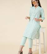 Anushil Cotton Checkered Mandarin Collar 3/4th Sleeves Straight Kurta With Pant Set Stitched