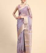 Purple Printed Organza Saree With Blouse