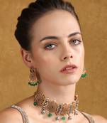 Antique Gold Plated Choker Necklace Set With Green Beads