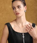 Elegant Silver Tassel Pendant Necklace Set With Crystal & Gemstone Accents
