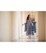 Indigo Dabu Print Cotton Anarkali Dress Set