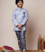 Boys Grey Jacquard Scallop Motifs Sherwani Set