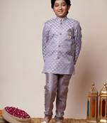 Boys Lilac Jacquard Scallop Motifs Sherwani Set