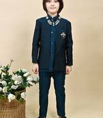 • Product Id : 4633195 • Package Details : 1 Sherwani, 1 Trousers, 1 Shrug, 1 Necklace • Type : Kids Sherwani • Region : Other • Occasion : Wedding • Work : Embroidered • Type : Thread Work • Look : Contemporary • Bottom Style : Trouser • Sleeve : Full Sleeve • Neck Style : Chinese Collar Kameez • Bottom Color : Blue • Top Color : Blue • Top Fabric : Silk Blend • Bottom Fabric : Silk Blend • Stitching : Stitched • Gender : Boy Payments [+]