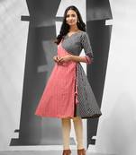 The description of this red & black angrakha-style printed cotton kurta is sure to captivate anyone’s attention with its unique features. This beautiful kurta features a sweetheart neckline and the traditional angrakha style that adds a touch of elegance to its design. With three-quarter sleeves and a vibrant printed pattern, it reflects a charming appeal. The flared silhouette enhances the graceful flow of the garment, while the wrap-around style secured with drawstrings offers a comfortable and adjustable fit. This kurta not only embodies style but also showcases the rich cultural heritage that is both fashionable and timeless.