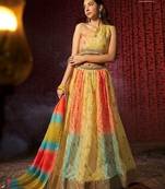 • Fabric : Organza • Work : Embroidered • Color : Yellow • Length : 2.25 Lehenga Details