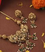 • Product Id : 4486647 • Package Details : 1 Necklace / 1 Pair Of Earrings • Type : Necklace Sets • Look : Traditional • Jewellery Work : Gold Plated • Color : Gold • Plating : Yellow Gold • Base Material : Alloy Payments [+]