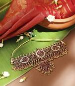 Gold Plated Stone Studded Round & Kari Motif Shape Choker Necklace