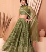 The Accompanying Net Dupatta Adds A Touch Of Grace, Beautifully Complementing The Green Lehenga And Choli. Pair This Stunning Outfit With Your Favorite Accessories And Heels To Complete A Chic And Stylish Look That Exudes Sophistication And Charm.Disclaimer: Slight Color Variation May Occur Due To Photographic Reasons.