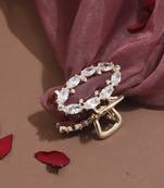 Elevate your hairstyle with this elegant rose gold plated hair clutcher adorned with sparkling American stones. The luxurious rose gold finish adds a touch of sophistication, while the dazzling stones catch the light beautifully, making this clutcher a perfect accessory for both casual and formal occasions. Designed for durability and ease of use, this hair clutcher securely holds your hair in place, allowing you to create a variety of styles effortlessly. Ideal for everyday wear or special events, this piece is a must-have for those who appreciate a blend of elegance and functionality in their hair accessories.