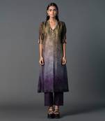 Featuring A Brown And Purple A-Line Kurta In Dupion Silk Base With Open Neck, Mid Slit And Print. It Is Paired With Pants. Color : Brown And Purple