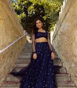Navy Blue Net Sequins Embroidered Lehenga Choli