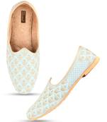 • Product Id : 4162351 • Package Details : 1 Pair Of Mojari • Type : Juttis • Color : Sea Green • Toe Shape : Pointed Toe • Material : Synthetic • Work : Solid • Occasion : Ethnic • Ankle Height : Regular Payments [+]