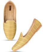 • Product Id : 4162322 • Package Details : 1 Pair Of Mojari • Type : Juttis • Color : Gold • Toe Shape : Round Toe • Material : Synthetic • Work : Solid • Occasion : Ethnic • Ankle Height : Regular Payments [+]