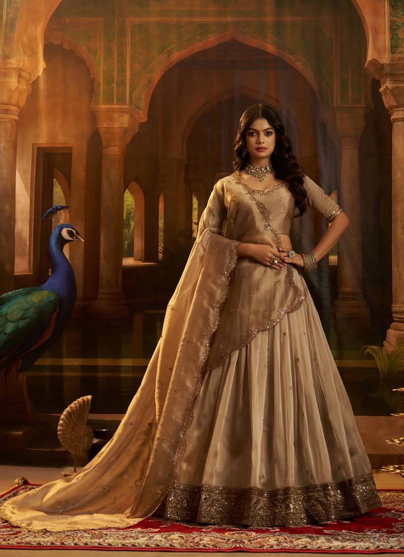 Brown Organza Embroidered Lehenga Choli With Dupatta