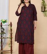 Women Plus Size Maroon Floral Printed Pure Cotton Kurta With Sharara