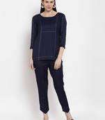 • Product Id : 3574012 • Package Details : 1 Top/1 Bottom • Type : Kurti Pant Set • Region : Other • Occasion : Casual • Look : Fashion • Sleeve : Elbow Sleeve • Neck Style : U Neck • Fabric : Viscose Rayon • Color : Blue • Work : Handloom • Stitching : Stitched Payments [+]