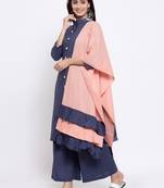 Category Of Article is Kurta Sets; Sub Category is Ethnic Kurta Sets; Color of Top is Grey; Color of Bottom is Grey; Fabric used in Top is Cotton; Fabric used in Bottom is Cotton; Sleeves Type is Regular Sleeves; Sleeves Length is 3/4th Sleeves; Dress Length is Calf Length; Top Style is A Line; Bottom Style is Palazzos; Lining Used in Top No; Lining Used in Bottom No; Closure Top is Slip On; Closure Bottom is Slip On; No. Of Pocket is 0; Fit is Loose Fit; USP is Shell Work