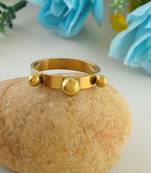 Elevate your style with this exquisite brass gold-plated stud challa finger ring, designed for both men and women. Crafted with meticulous attention to detail, this ring boasts a sleek and minimalist design with three spherical studs adorning the band. The lustrous gold plating adds a touch of opulence, making it a versatile accessory that can be worn for any occasion. Whether you're dressing up for a formal event or adding a subtle accent to your everyday attire, this ring is sure to turn heads. Comfortable and lightweight, it's a perfect choice for those who appreciate timeless elegance. Embrace the beauty of simplicity and make a statement with this captivating brass gold-plated stud challa finger ring.