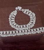 Memoir Silver Plated Brass, Cz Studded Flower Pattern, Jhalar Ghungroo Payal