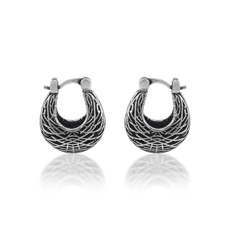 Elevate your style with these exquisite handmade hoop earrings, crafted from pure brass with Antique finish silver plating finish. Inspired by the charm of a real-use basket, each earring showcases intricate detailing with small figs and straw-stems, giving a lifelike impression of artisanal craftsmanship. The warm rose gold tone adds elegance, while the unique basket-inspired design makes these earrings a standout accessory for any occasion. Designed to be skin-safe and anti-allergy, these earrings combine comfort with beauty, ensuring they can be worn all day without irritation. Whether it’s an engagement, wedding, festive celebration, or a casual gathering, these hoops are the perfect blend of tradition and modern fashion.