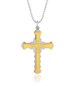 Add elegance to your accessories collection with the Dzine Trendz Stainless Steel Pendant, designed in a striking cross-shaped style. Crafted with a durable stainless steel base, it features a sophisticated gold tone complemented by a sleek silver plating. Measuring 50 mm in height and 40 mm in width, this pendant is both bold and stylish, making it perfect for everyday wear or special occasions. Its solid construction ensures long-lasting quality, while the clean design adds a modern touch. A versatile piece, this pendant also makes a thoughtful gift option for someone who appreciates timeless jewelry.