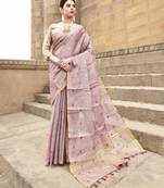 Elora Pure Linen Tissue Multicolor Polka Dots Weaving Saree For Women (Dusty Pink)