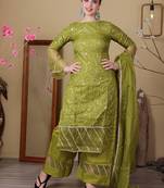 • Product Id : 4487187 • Package Details : 1 Kurta / 1 Pant / 1 Dupatta • Type : Readymade Suits For Women • Region : Other • Work : Embroidered • Look : Fashion • Sleeve : Full Sleeve • Neck Style : Boat Neck • Fabric : Organza • Color : Green • Stitching : Stitched Payments [+]