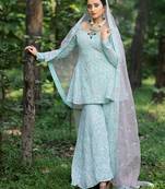 Ethnovog Ready To Wear Sky Blue Embroidered Georgette Gharara Suit Stitched