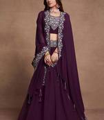 • Fabric : Georgette • Work : Embroidered • Color : Purple Lehenga Details